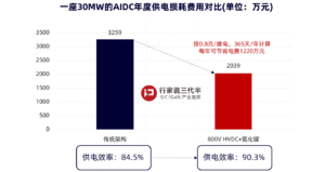 电费方面,据浪潮信息-元脑服务器测算,转向HVDC架构,数据中心的供电损耗可从15.5%降至9.7%,从而大幅降低运营电费,以一座30MW的智算中心为例,预计每年可节省电费超1220万元。