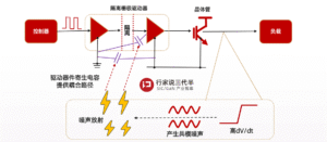 另一方面是由于氮化镓/碳化硅在开关瞬态过程中的dv/dt达到传统硅MOSFET和IGBT的2倍以上,di/dt更是达到5倍以上。而氮化镓/碳化硅较高的dv/dt会导致产生共模电感,对外辐射噪声,从而导致晶体管发生串扰,并在栅极生成振荡的电压尖峰,引起器件误开通等问题。
